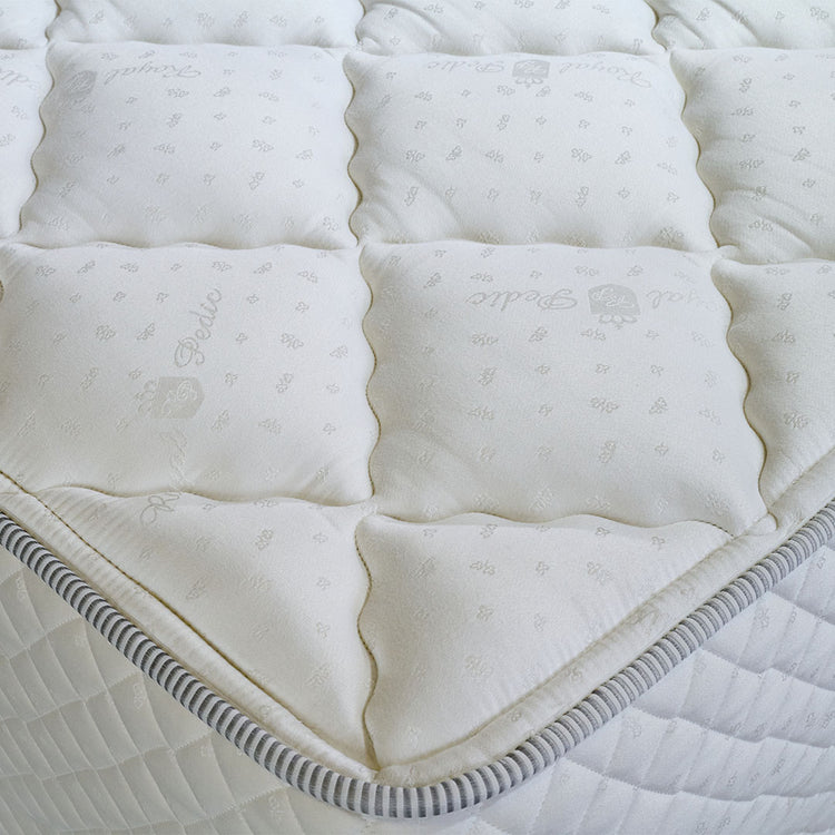 While all of our Dream Spring models are fantastic, if you want the top of the line in the Dream Spring Collection, look no further than the Dream Spring Ultimate! The Dream Spring Ultimate contains specialty natural fibers such as Mongolian Camel Hair, Cashmere, Silk, and French Wool for breathability and luxurious comfort. Additional plushness comes by a layer of Comfort Fill Fiber, and a thick and soft layer of Talalay Latex from The Netherlands. We add a British Titanium micro coil system to each side of our Dream Spring 3100-S German Pocketed Innerspring Unit to take comfort to the next level resulting in over 10,000 coils in a king size Dream Spring Ultimate Mattress all working together in harmony creating a synergy of support and the ultimate in sleeping comfort.