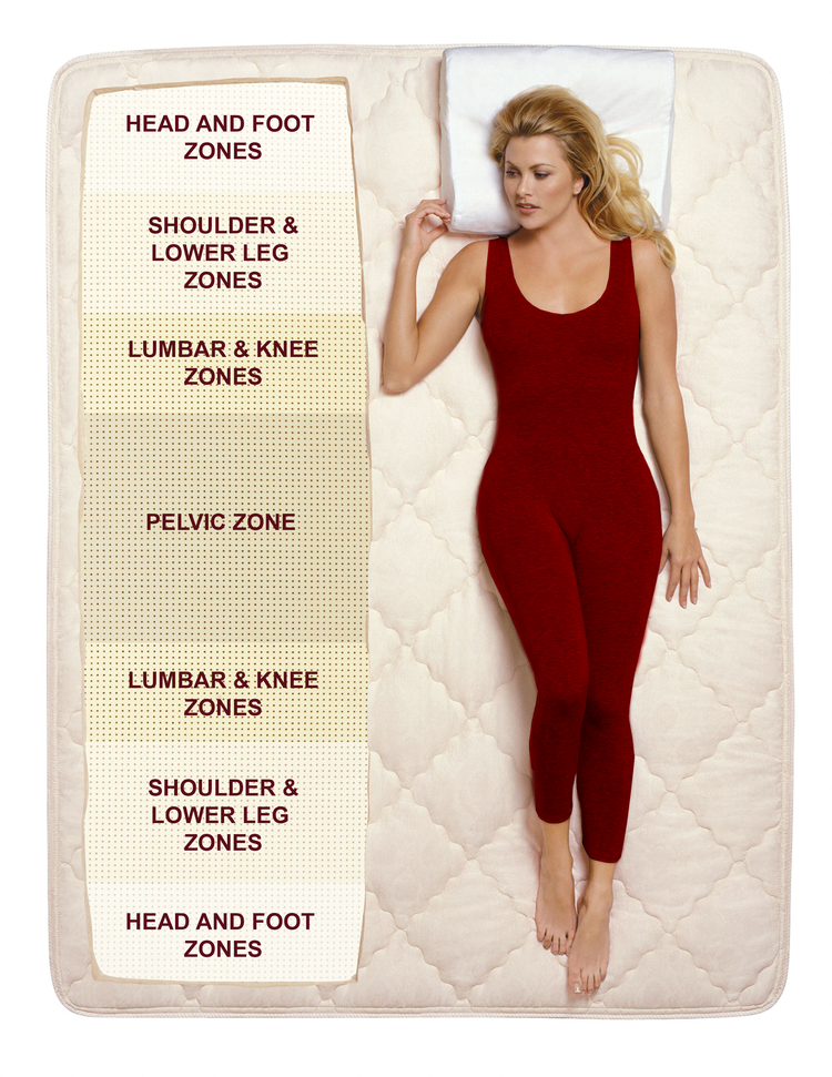 The inner core of the mattress is comprised of 7 zones ergonomically designed for uncompromising comfort. It features softer shoulder and hip areas for pressure point relief, and a firmer lower back area to provide bouyant support. Compared to springs in a mattress, latex is more motionless for a denser feel of support.